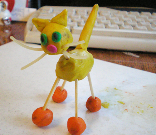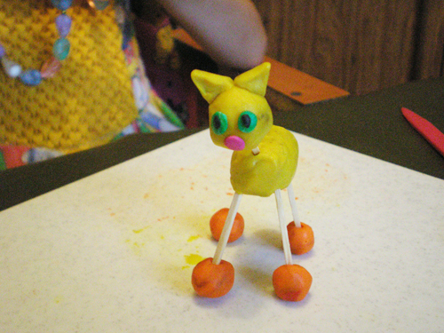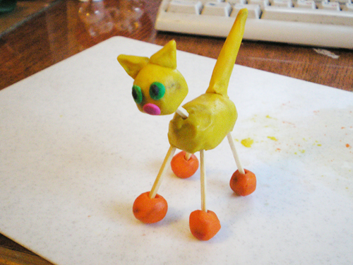 - Пластилин – жёлтый, зелёный, розовый, чёрный и оранжевый
