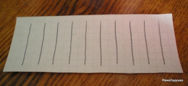 Чертим на листке бумаги десять палочек одинаковой величины, на одинаковом расстоянии друг от друга.