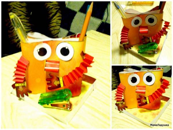 Вырезаем, соединяем все детальки, и робот Гармошкин готов к хранению ручек и карандашей!